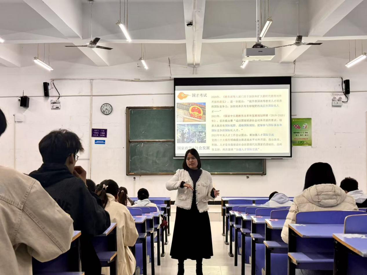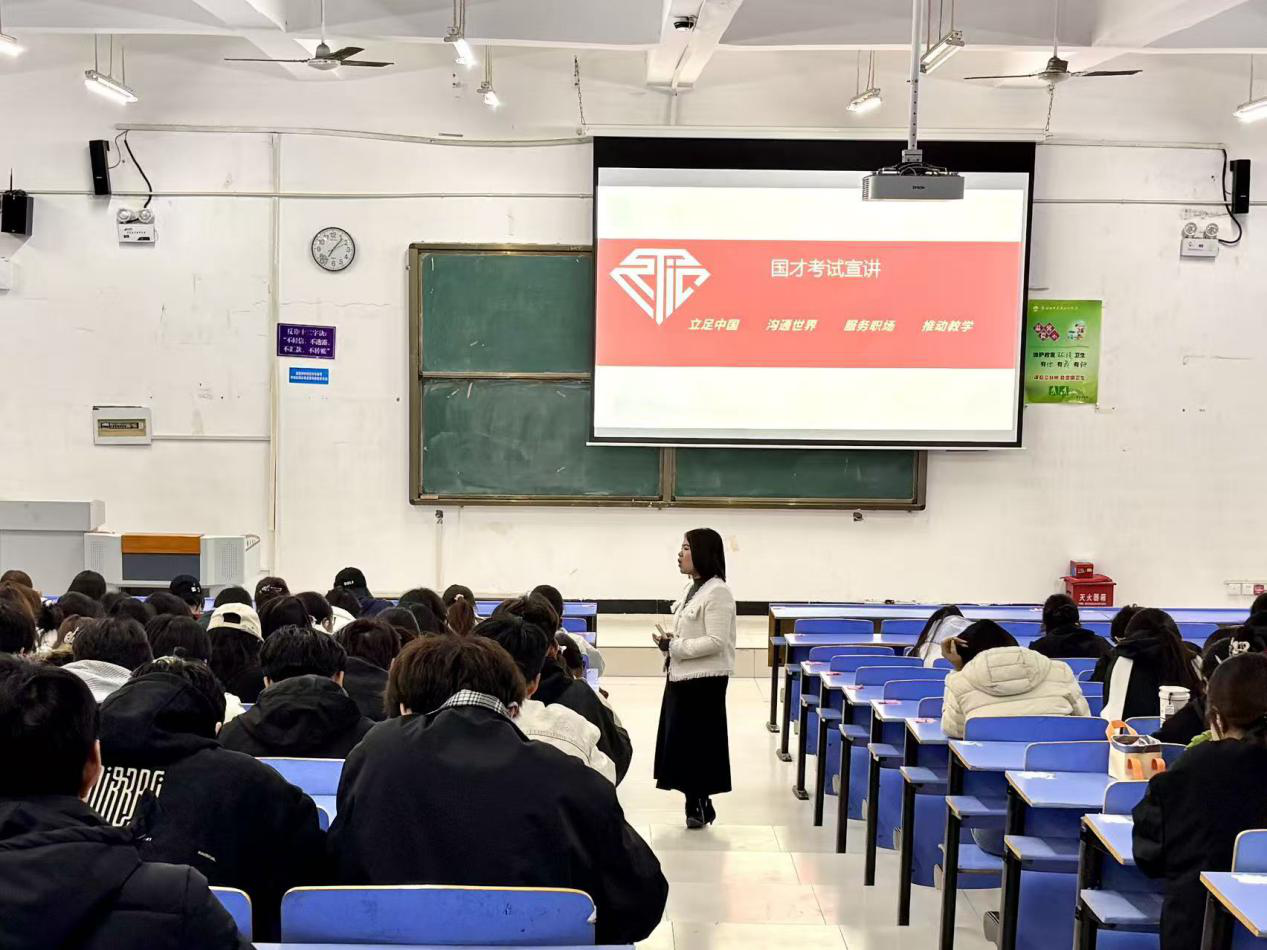 (文/孙文静图/苏柯翰)为了给beat365学子系统解读国才考试核心信息,助力同学们精准规划英语能力提升路径。公司于10月27日晚7点,在文华阶梯一教室开展国际人才英语考试(简称“国才考试”)专题宣讲会。本次讲座beat365副经理周伟红主讲,2024级全体员工参加。