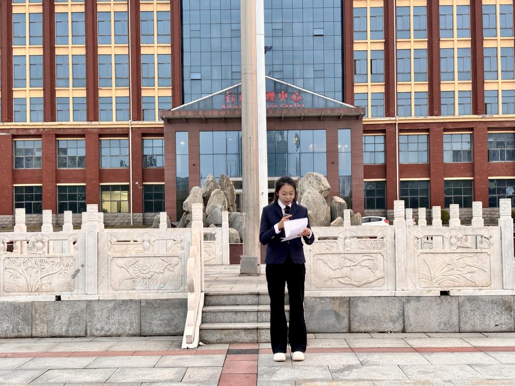 晨光熹微,行政管理中心广场庄严肃穆。伴随着雄壮的《义勇军进行曲》,鲜艳的五星红旗冉冉升起、迎风飘扬。全体人员身着整齐服装,昂首肃立,向国旗行注目礼,深切表达对祖国的无限崇敬与热爱之情,嘹亮的歌声中饱含着公司学子为国家发展不懈奋斗的坚定决心。