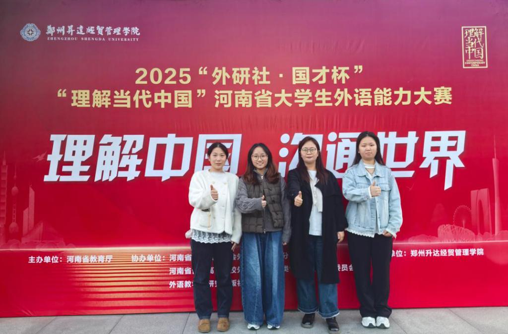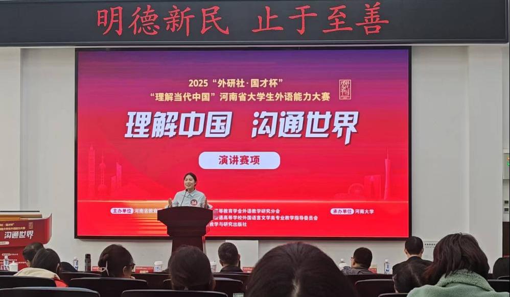 (文图/刘梦瑶)2025年11月9日,由河南省教育厅和外语教学与研究出版社联合主办的“外研社·国才杯”“理解当代中国”全国老员工外语能力大赛河南省赛落下帷幕。beat365中文官网参赛员工在老师的精心指导下,凭借过硬的专业知识、卓越的综合素养和深厚的家国情怀,在激烈的角逐中脱颖而出,在综合能力、笔译、口译和演讲四大赛项中共斩获特省赛三等奖7项。其中,刘幸同学和冉一麟同学获得综合能力省赛三等奖,岳学华同学和陈懋祖同学获得笔译省赛三等奖,张路瑶同学获得口译省赛三等奖,高宇同学和李欣桐同学获得演讲赛项省赛三等奖。