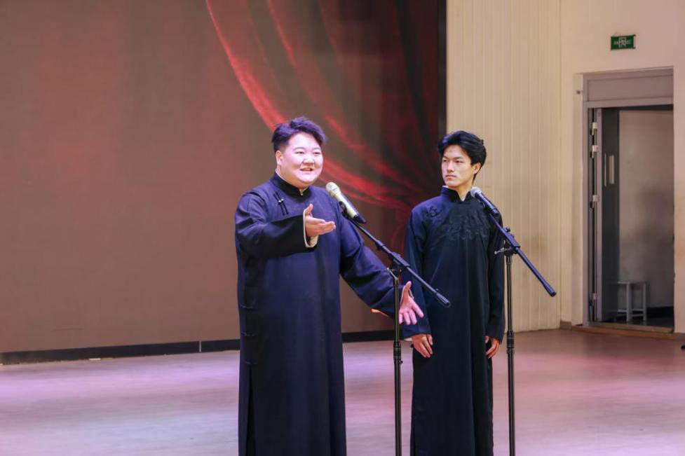 为打磨出优秀作品,备赛期间两位同学丝毫不敢懈怠。他们扎根校园生活与文化观察,反复雕琢相声脚本的每一个包袱、每一句台词,利用课余时间逐字逐句打磨表演细节,对着镜子练习表演神态,互相指正台风走位,在一次次排练中磨合默契、精进技巧,只为在舞台上呈现最佳状态。决赛现场,郭常睿、马贺祥两人配合默契十足,包袱抖得干净利落,台词风趣又接地气,扎实的台词功底和张弛有度的舞台表现力,将现场气氛推向一个又一个高潮,最终凭借亮眼表现脱颖而出,成功摘得桂冠。