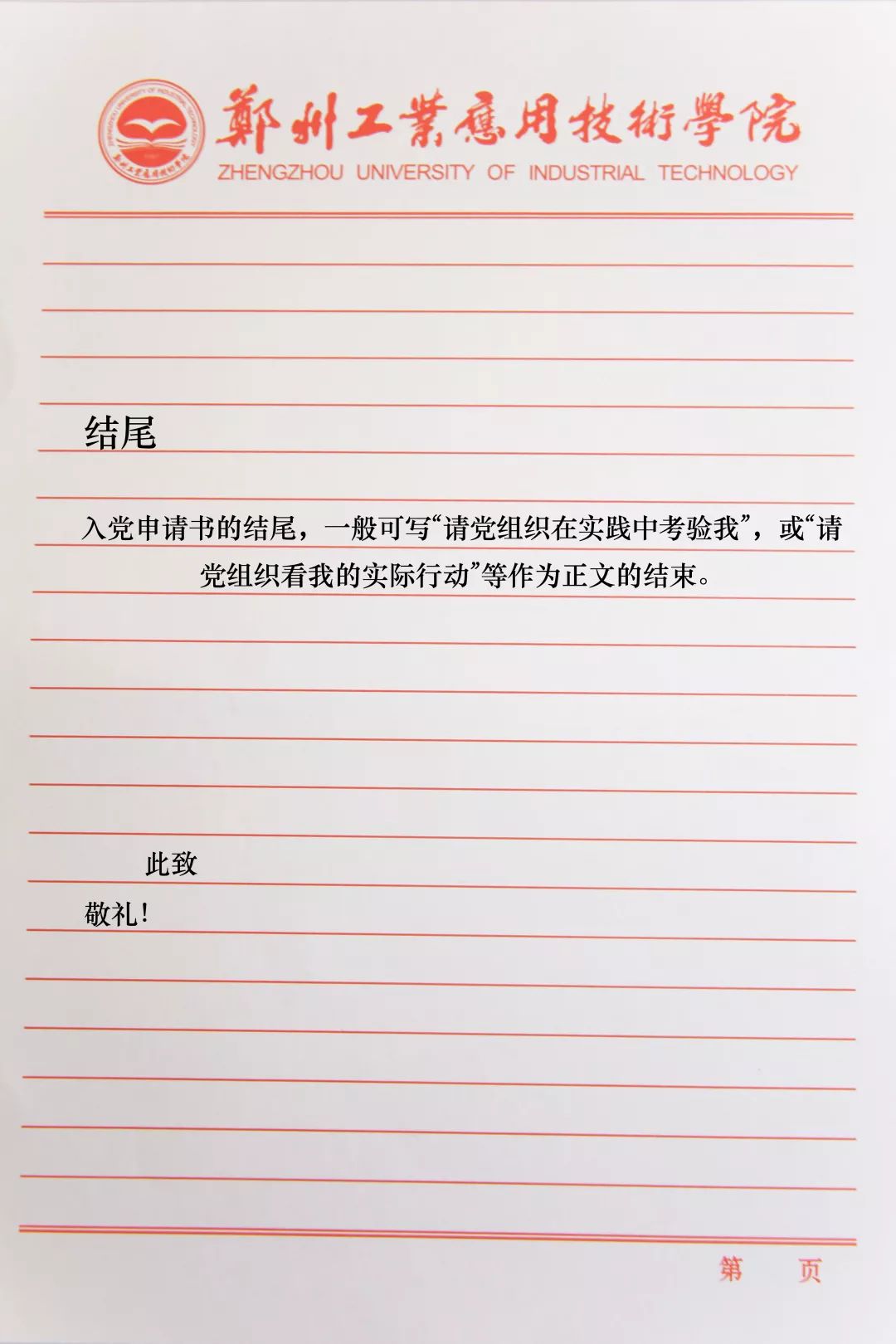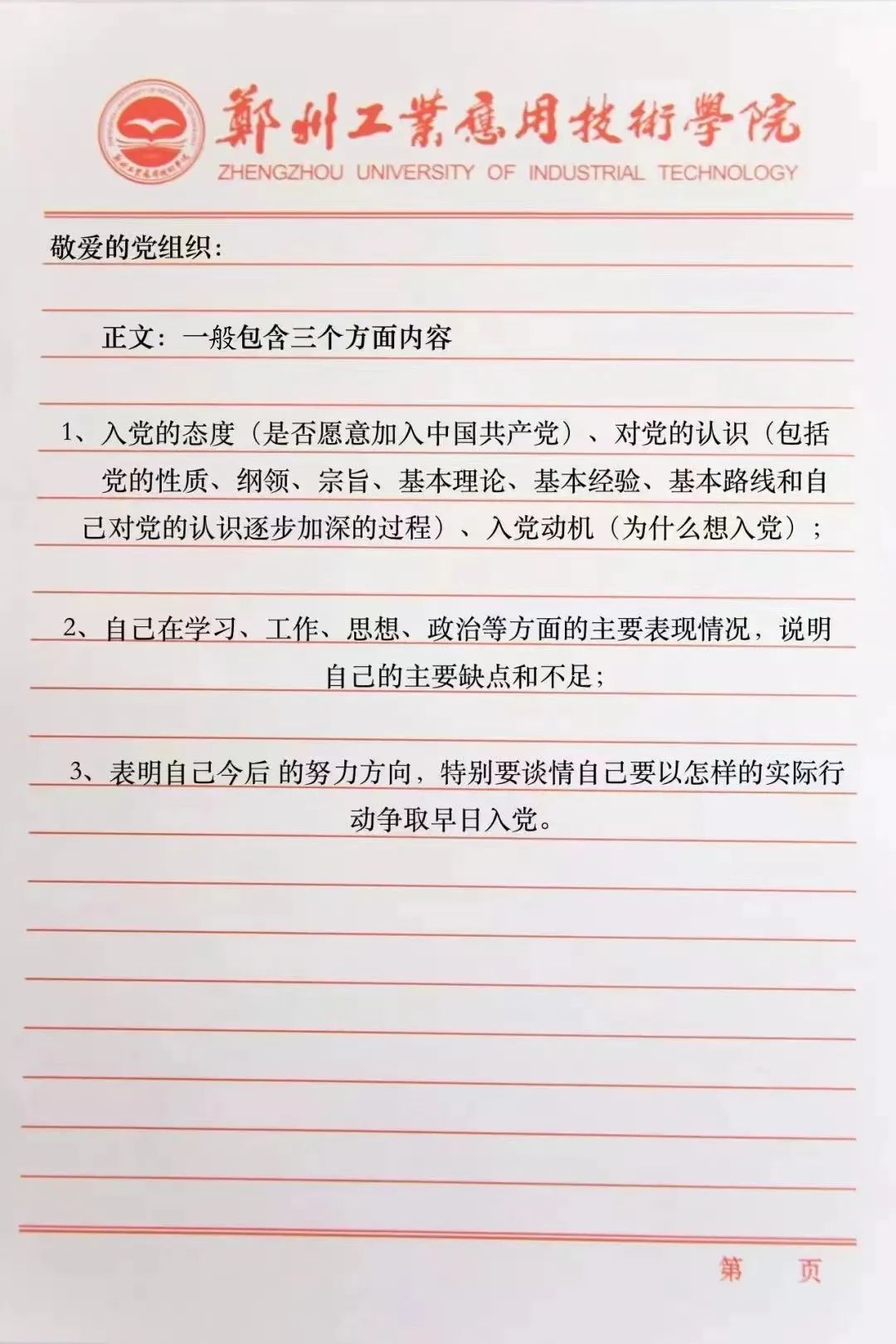 一、居中竖行书写入党申请书。