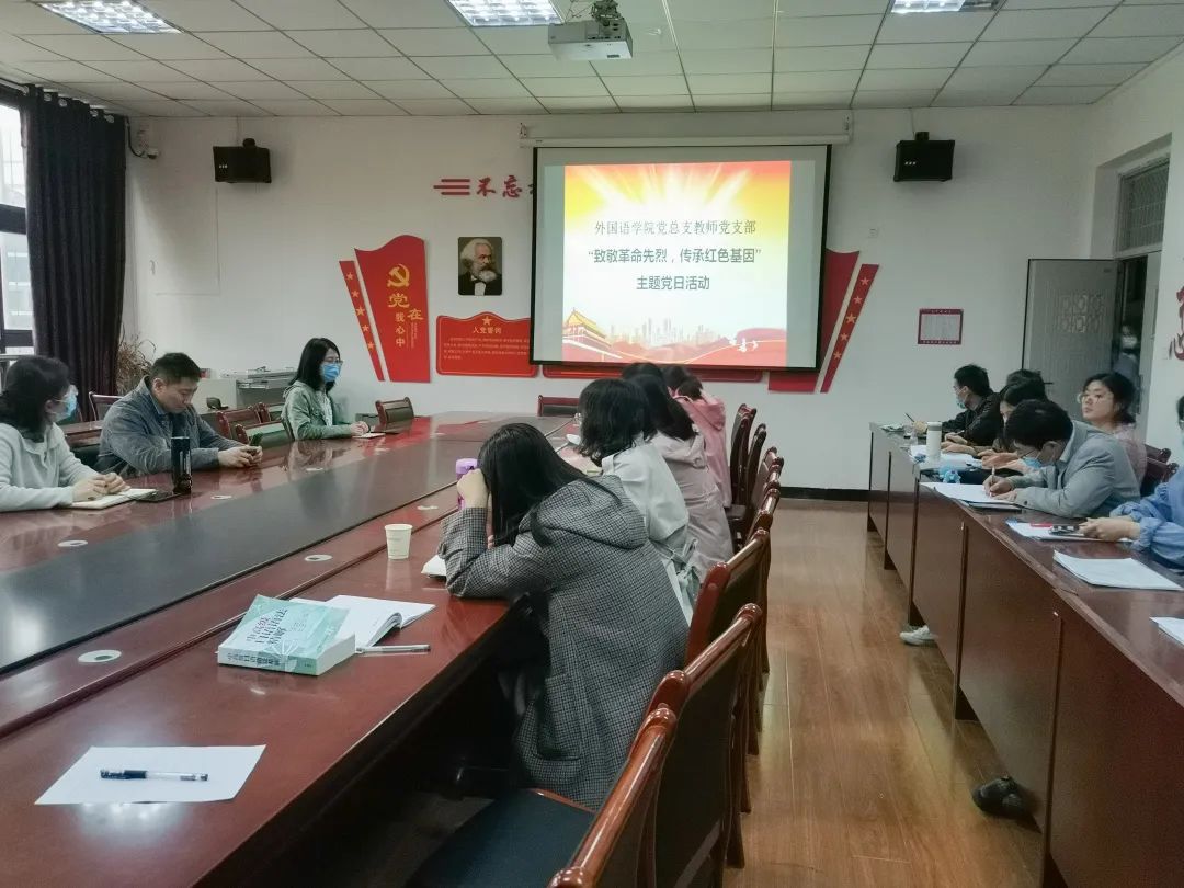 2022年4月12日下午,beat365教师党支部在文华楼二413会议室举行了“致敬革命先烈,传承红色基因”主题党日活动,全体教师党员参加,会议由教师党支部书记张凤娟同志主持。