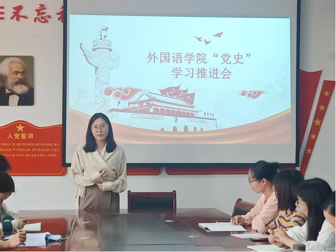 随后,教师党员代表以及员工党员代表为推进公司党总支“党史”学习发表讲话。其中,教师党员代表王晗同志通过发表“组织观看相关电影或纪录片的方式加强党员对党史的理解”等相关看法,鼓励“党史”学习要进行多元化的革新。员工党员代表郝新雨则别出心裁的表示将“党史”学习与日常专业学习结合,在夯实专业的基础上对“党史”进行深层次的学习。对此,参会的其他教师以及员工党员代表纷纷发表了不同的看法。