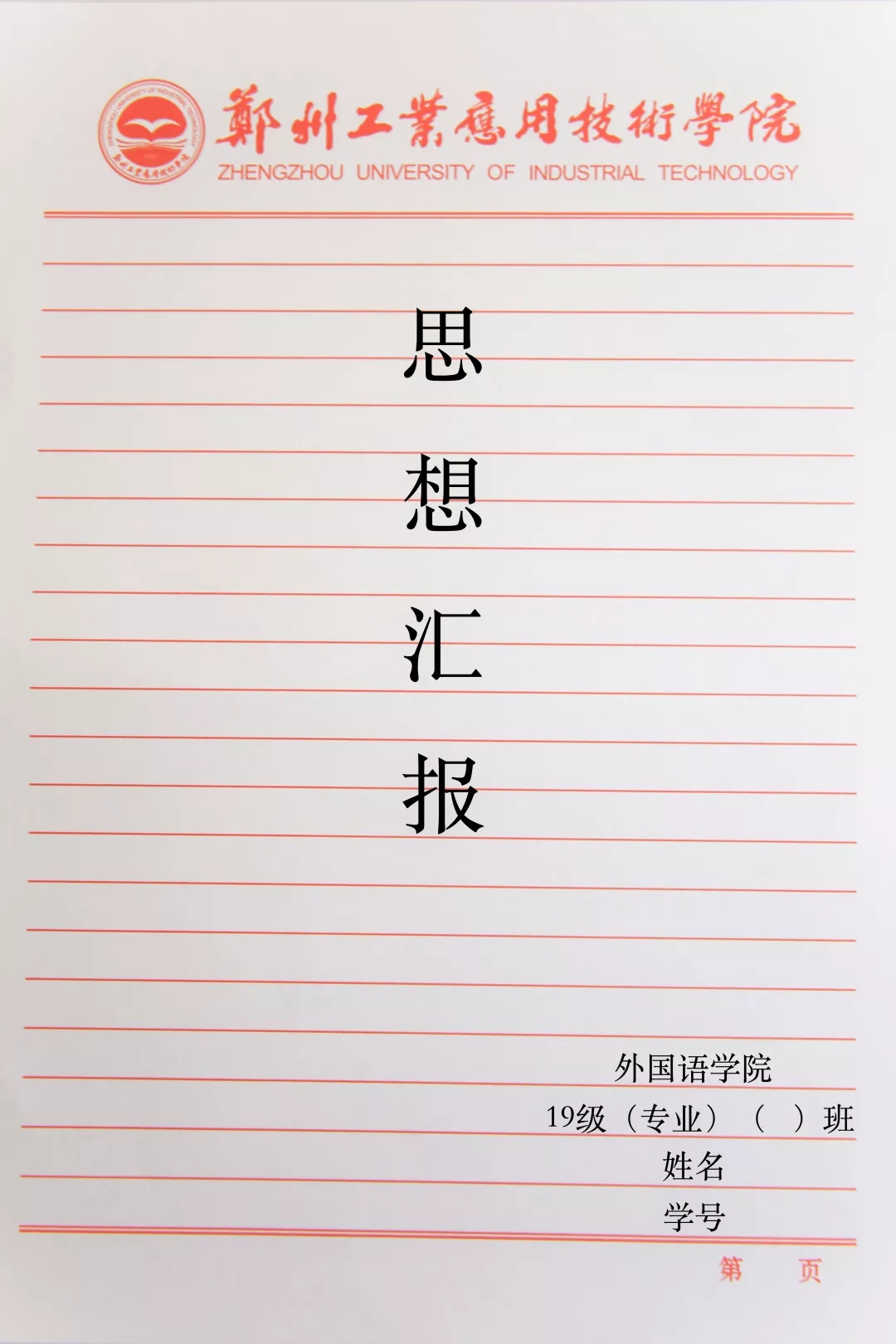 一、居中竖行书写思想汇报。