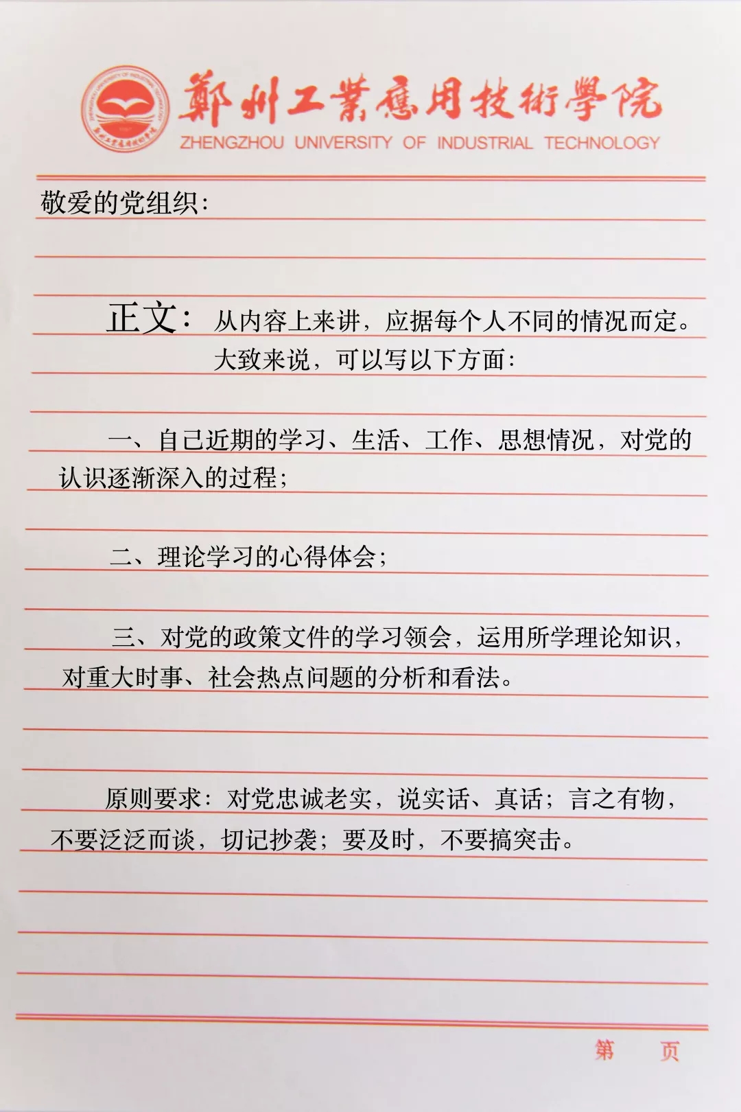 三、原则要求:对党忠诚老实,说实话、真话;言之有物,不要泛泛而谈,切忌抄袭;要及时,不要搞突击。