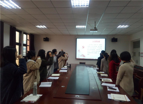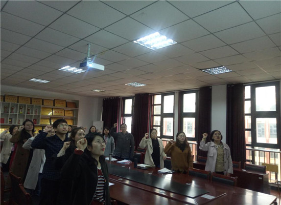 会议第二项:重温入党誓词,由教师党支部书记荆苗苗同志领誓