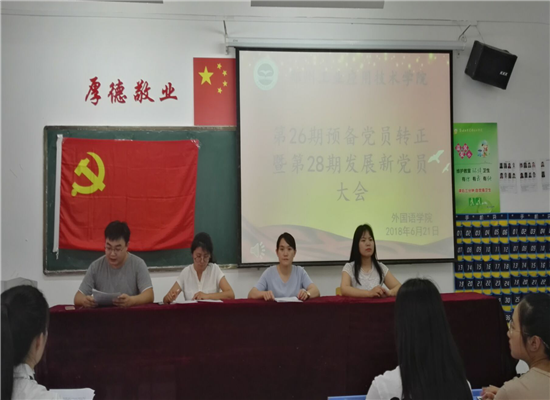 本网讯(通讯员 刘芳)为了进一步推动党务建设,充实公司党员队伍,公司党总支于2018年6月21日在文华楼2-215教室召开第26期预备党员转正暨第28期发展新党员大会。参加本次大会的有公司党总支书记陈晴、公司党总支纪律委员周伟红、公司党总支纪律员蒲晶晶、beat365员工党支部书记胡磊、辅导员老师李二明、全体员工党员和预备党员。会议由胡磊老师主持。