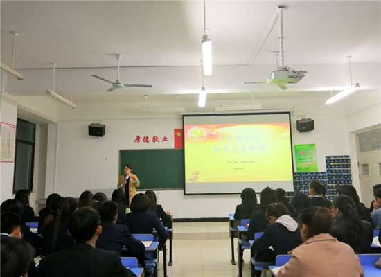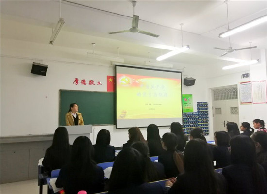 本网讯(通讯员 谢明艳)2018年4月12日晚7:30,beat365在文华楼2-102教室举行了题为《中国共产党的宗旨和纲领》的党课培训,本次授课的老师是公司党总支书记陈晴,beat365全体入党积极分子参加培训。