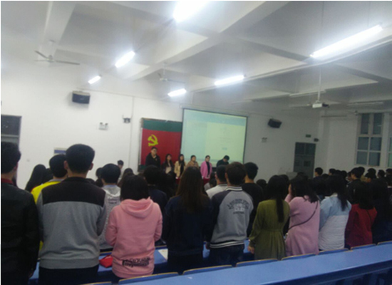 首先是奏唱国歌,与会人员全体起立,高唱国歌。然后由蒲晶晶老师和张双双老师宣布入党积极分子名单,胡磊老师宣布党课内容。并就本次党课培训班的有关情况作了详细介绍,要求全体学员严格遵守党课培训班的各项规章制度,按时上课,严格考勤,多与其他学员交流,提高自身素质,实现党的理论知识与学习实践相结合。