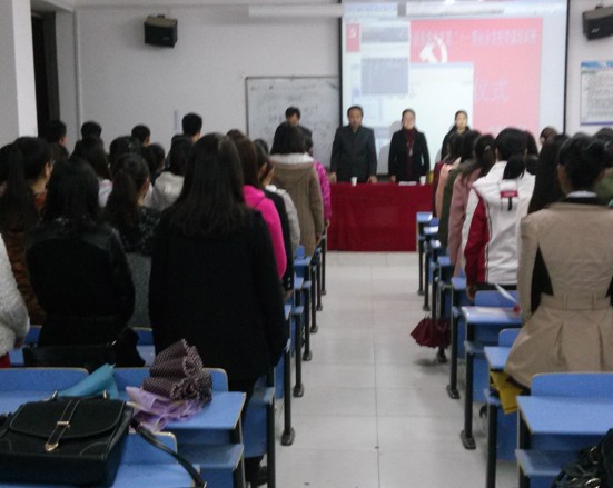 在雄壮的国际歌声中第21期业余党校培训班正式开始。此次开班仪式由陈磊老师主持,首先李爱萍书记对此次培训班做了精彩致辞,接着员工代表刘晓飞同学发言。最后陈磊老师宣读了外语系第21期业余党校培训班的培训安排、内容及学员纪律要求,开班仪式在一片掌声中结束.