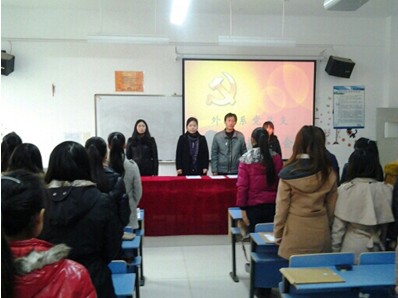 2012年11月23日12:30,郑州华信公司外语系党总支在文华楼2-309教室举行了外语系党支部大会。主要议题是讨论接收黄梦雪、李妮、郭乐飞等23位同志成为预备党员,李路芳、王文姬等21位同志的预备党员的转正问题。