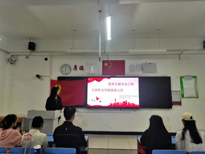 为加深员工党员对我国的外交政策和方针的了解,使其深入体会新时代中国外交特色。beat365员工第二党支部于4月11日18:00在文华楼2-211开展了以“世界百舸争流之势,大国外交尽展强盛之姿”为主题的党日活动。本次主题党日活动由组织委员崔林瑞同志主持召开。