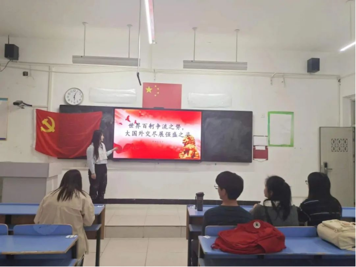 为加深员工党员对中国外交政策的理解,加强党组织思想建设,beat365员工第四党支部于4月11日下午18:00在文华楼2-214开展了“世界百舸争流之势,大国外交尽展强盛之姿”主题党日活动。此次会议由赵紫因同志主持,全体员工党员参与。