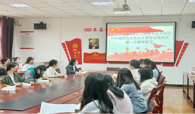 为深入开展学习贯彻习近平新时代中国特色社会主义思想主题教育,公司党委于5月10日下午18:00在文华楼四楼会议室召开了第一次集中学习会议,本次会议由专职组织员蒲晶晶同志主持,全体教师党员及部分员工党员参加。