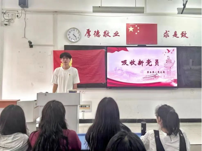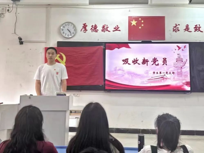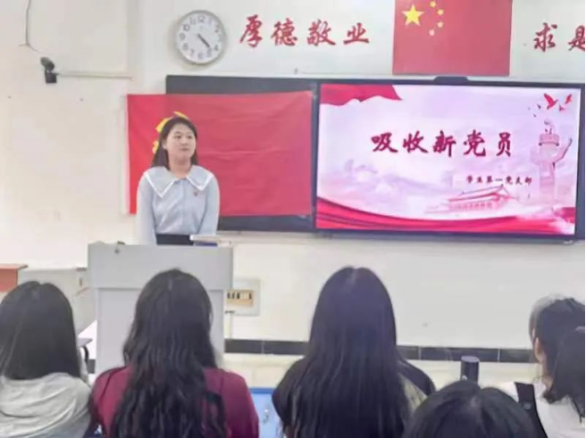 会议伊始,由组织委员滕骏同志带领全体同志起立奏唱国歌。接下来,王丹等10位同志结合实际情况汇报了自己对党的认识、入党动机和现实表现等。随后,入党介绍人分别介绍了10位同志在培养和考察期间的表现情况并发表意见。紧接着,滕骏同志对10位同志现实表现的考察情况、综合政治审查情况和党内外群众座谈会等情况做出汇报,与会党员纷纷发表意见,对其能否入党进行充分讨论,经过正式党员无记名投票,一致同意接收王丹等10位同志为中共预备党员。会议最后,支部书记蒲晶晶同志宣读会议决议,并呼吁大家要时刻以党员标准严格要求自己,不能懈怠,要在思想和行动上入党。