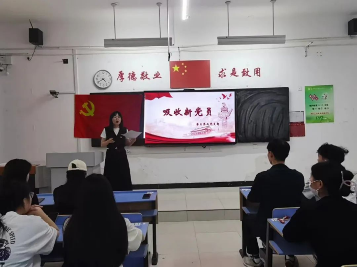 大会伊始,组织委员崔林瑞同志介绍会议流程并对会议出勤情况进行通报。第一项,全体起立奏唱国歌。随后,11名同志逐一汇报自身对党的认识、入党动机、现实表现以及应向党组织说明的其他问题,将自己入学以来的思想、学习、生活等方面向党组织做了具体汇报,表达了对党的忠诚,对党的事业的热爱和加入党组织的向往,以及成为共产党员的强烈愿望和愿意为党奋斗终生的坚定信念。接下来,入党介绍人依次对各位同志的培养考察情况进行介绍,肯定了他们优点,同时指出了不足之处,并对是否同意其加入中国共产党进行表态。