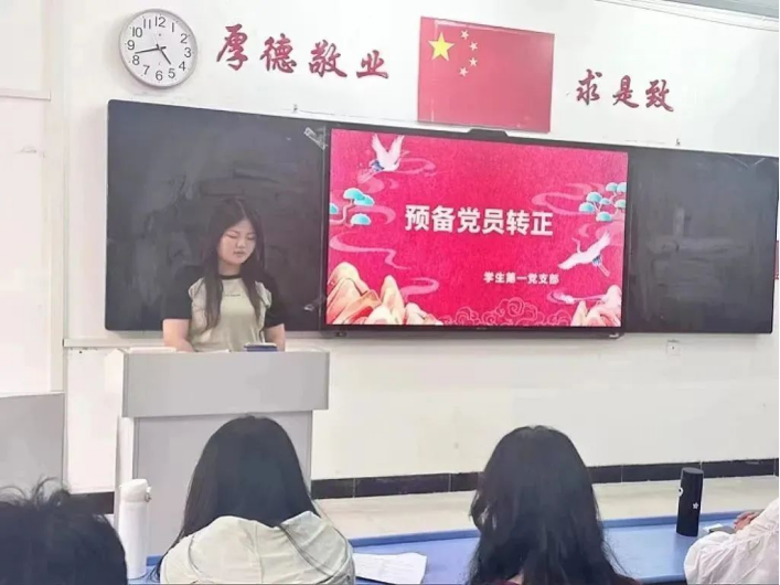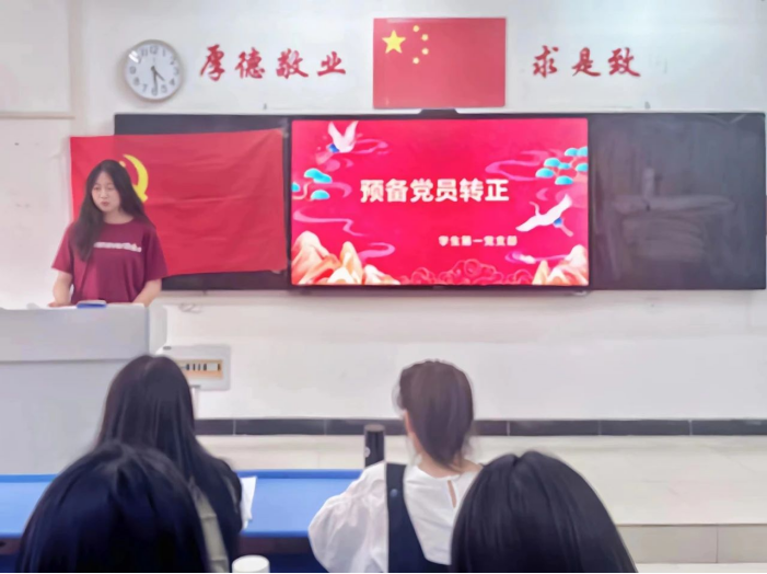 接下来,党员代表江春焕同志向党表明了决心,承诺在今后的学习与工作中定会以党员标准严格要求自己,始终坚守入党初心,不负时代的担当与重托。最后,蒲晶晶同志宣读了大会决议,并对新转正的同志们表示祝贺,希望同志们能坚定理想信念,再接再厉,严格按照党员的标准要求自己,充分发挥党员的先锋模范作用,坚定不移跟党走。