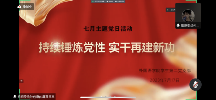 为深入学习贯彻习近平新时代中国特色社会主义思想主题教育,牢牢把握“学思想、强党性、重实践、建新功”总要求,beat365员工第二党支部于7月17日18:30在线上召开“持续锤炼党性,实干再建新功”的主题党日活动。本次活动由组织委员孙伟康同志主持,支部全体员工党员参加。