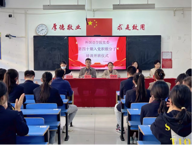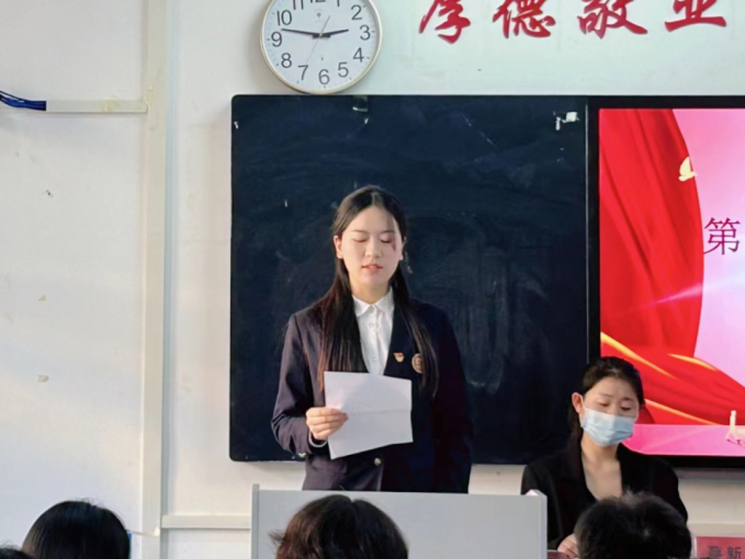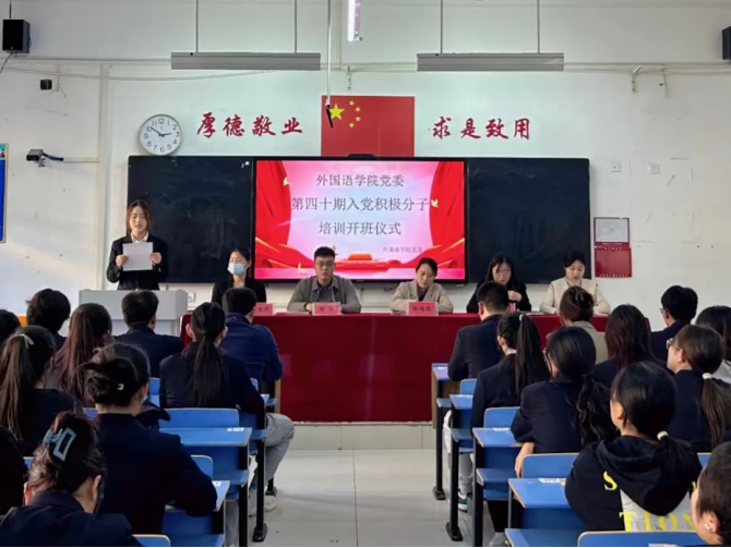 会议在庄严的国歌声中拉开帷幕。随后,蔡新月老师与赵弘老师分别宣读了第40期入党积极分子成员名单与培训班班规班纪。紧接着,由优秀党员代表李佳瑞同志发言。她热情分享了自己的入党经历和成长感悟,并鼓励大家要积极学习党的历史和基本理论,勇于担当。