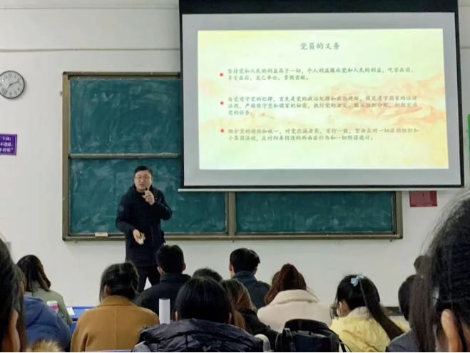 课程伊始,张柯同志从中国共产党的性质、指导思想以及入党原则等方面讲起,阐明了坚持党的领导和社会主义道路是历史和人民的必然选择。随后,他主要从“为什么要入党、入党的初心以及如何创造条件加入党组织”三个方面展开,使积极分子们了解到成为一名真正的共产党员需要不断鞭策和提高自己。最后,张柯同志对此次课程进行了总结,并呼吁入党积极分子们要紧跟党的步伐,以实际行动拥护党的领导。
