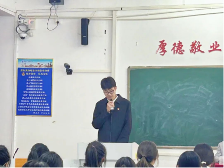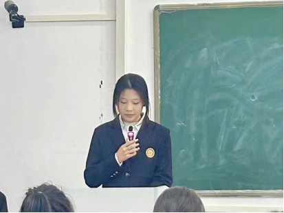 随后,闫凌菡同学作为第41期入党积极分子代表发言,她表示今后会自觉接受组织的培养、教育和考察,以党员标准严格要求自己,虚心学习。同时不断完善自我,提高自身的思想觉悟,明确入党动机,努力将自己培养成党和国家需要的高素质人才。