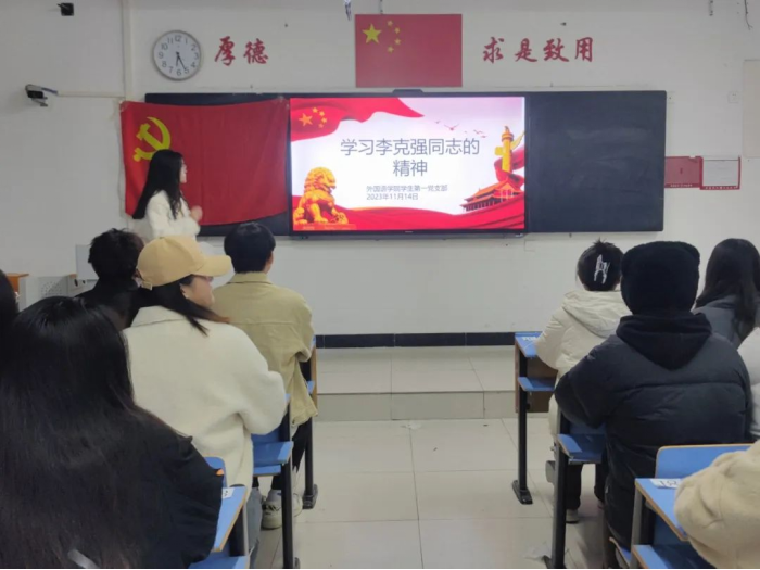 为深切缅怀李克强同志,学习李克强同志的精神,beat365员工第一党支部于11月14日18:00在文华楼2-216教室开展了“学习李克强同志的精神”主题党日活动。本次会议由组织委员尚博同志主持召开,员工第一党支部全体党员参加。