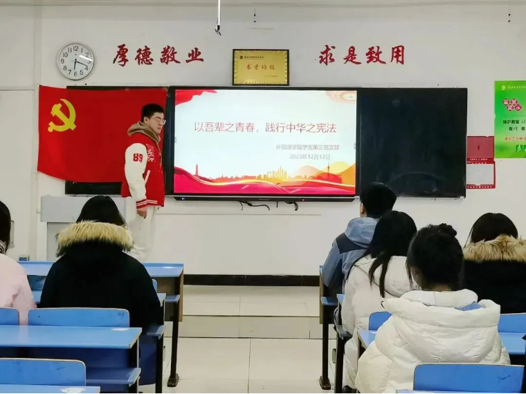 为深入弘扬宪法精神,培育法治观念,beat365员工第三党支部于12月12日18:00在文华楼2-215开展了以“以吾辈之青春,践行中华之宪法”为主题的党日活动。本次会议由组织委员丁家旭同志主持召开,员工第三党支部全体党员参加。