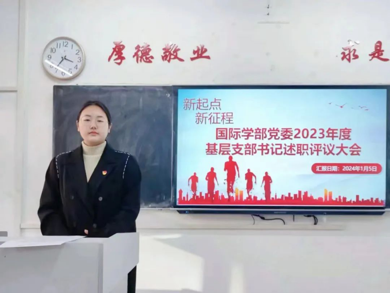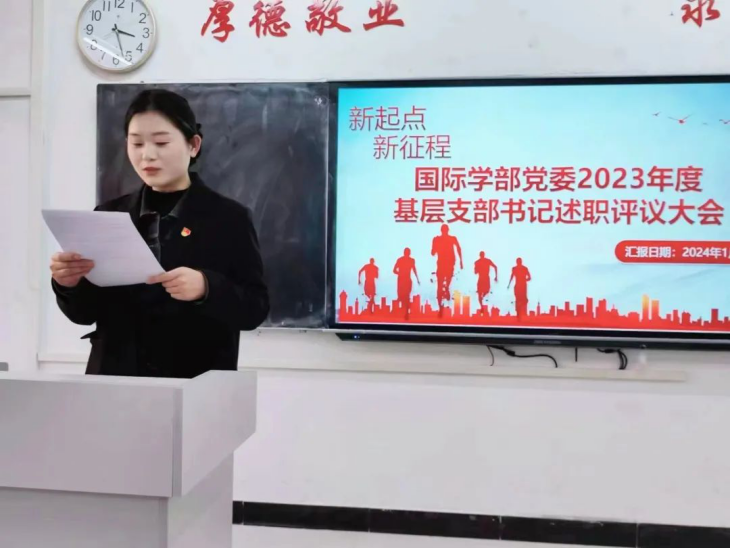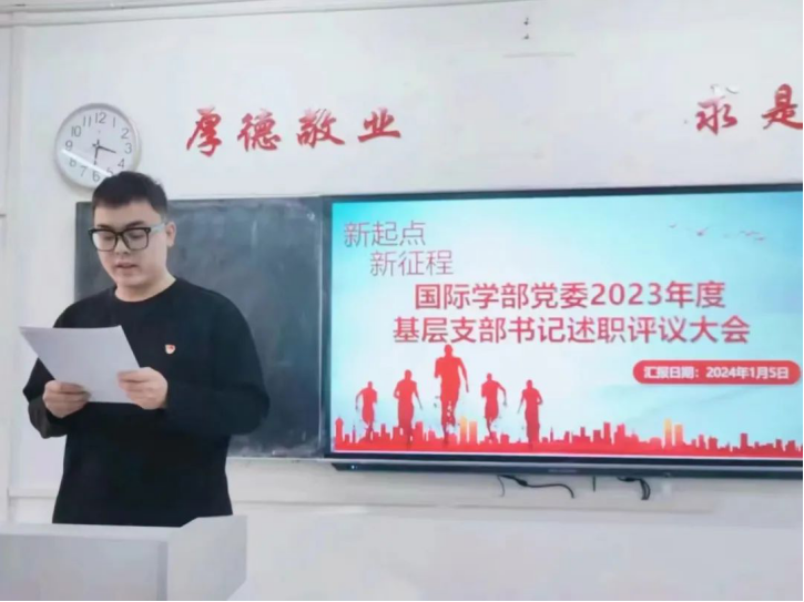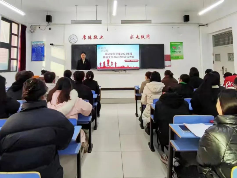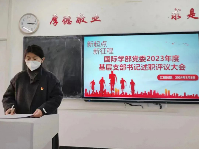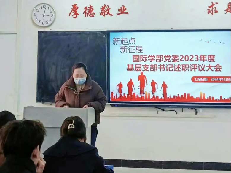为贯彻落实全面从严治党要求,进一步增强基层党支部书记抓党建的第一责任人意识,提升基层党建工作水平,国际学部党委于1月5日15:00在文华楼2--215召开基层支部书记述职评议大会。参加本次会议的有国际学部党委书记、员工管理副部长陈晴晴同志,各教师、员工党支部书记,部分教师党员、员工党员和群众代表。本次会议由李朝迪同志主持召开。