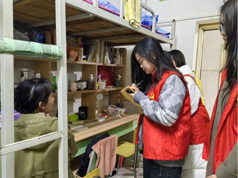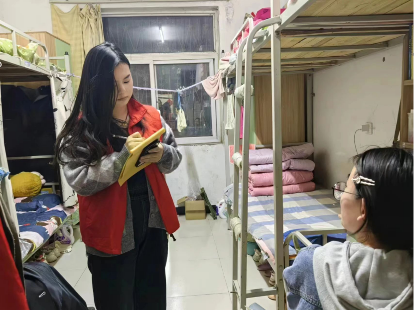 另一部分入党积极分子则深入宿舍,对同学们进行走访调查。她们耐心地询问了同学们的学习和生活情况,听取了同学们对公司的意见并认真记录下来。入党积极分子们个个身着红色马甲,成为了一道靓丽的风景线,为给同学们营造良好的学习和生活环境贡献自己的力量。