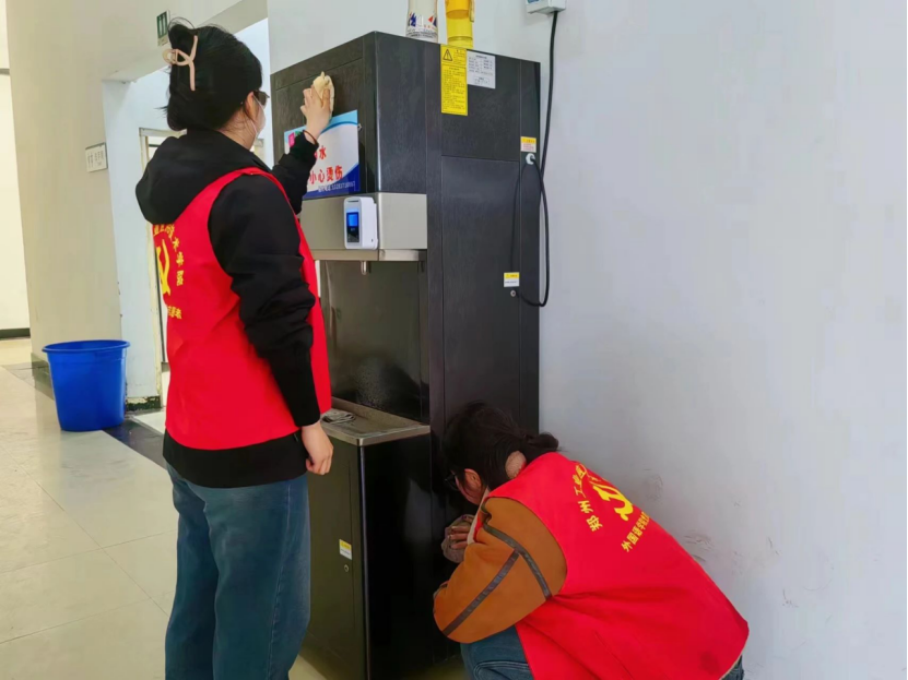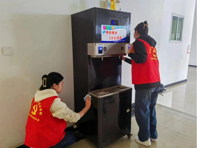 西校区的入党积极分子们开展了“校园环保我先行”和“我为同学做件事”等实践活动。他们分工明确,团结协作,一部分入党积极分子不仅仔细地对饮水机进行了擦拭,还对校园的垃圾进行了清扫。