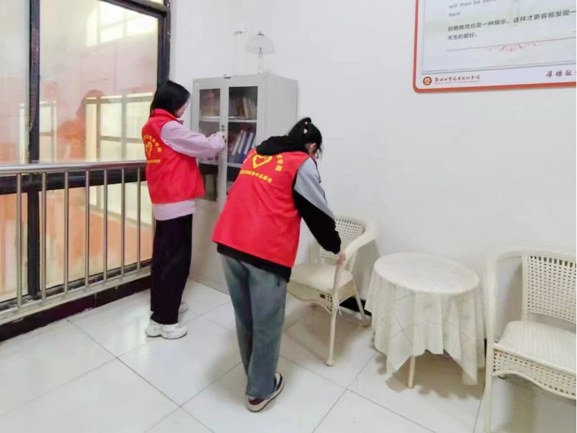 本次社会实践活动在校内进行,两个校区的入党积极分子们均积极参加,充分地展现出了其良好的精神风貌。东校区的入党积极分子们于文华楼开展了打扫阅览室和清洁心理咨询室等活动,大家积极主动,认真负责,相互协作,将书籍按顺序摆放整齐,对地面的纸屑和灰尘等进行了全面细致的打扫。
