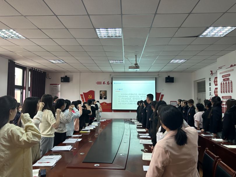 随后,张一琪同志组织与会成员重温入党誓词,使党员们进一步明确了自身的初心和使命。紧接着,由教师党员代表张园园同志进行发言,她指出,作为党员教师,必须时刻保持清醒的政治头脑,严格遵守党的纪律和规矩,做到言行一致,以身作则。
