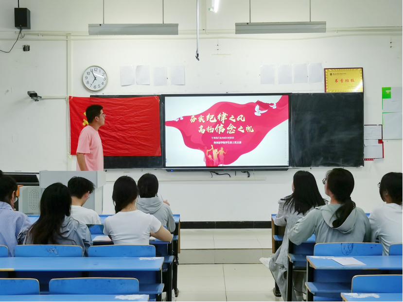 为加强党支部的纪律教育,强化正风肃纪,提高广大党员遵规守纪的自觉性和坚定性。beat365员工第三党支部于5月14日18:00在文华2-215开展“夯实纪律之风,高扬信念之帆”主题党日活动。本次活动由支部组织委员丁家旭同志主持召开,第三党支部全体党员同志参加。