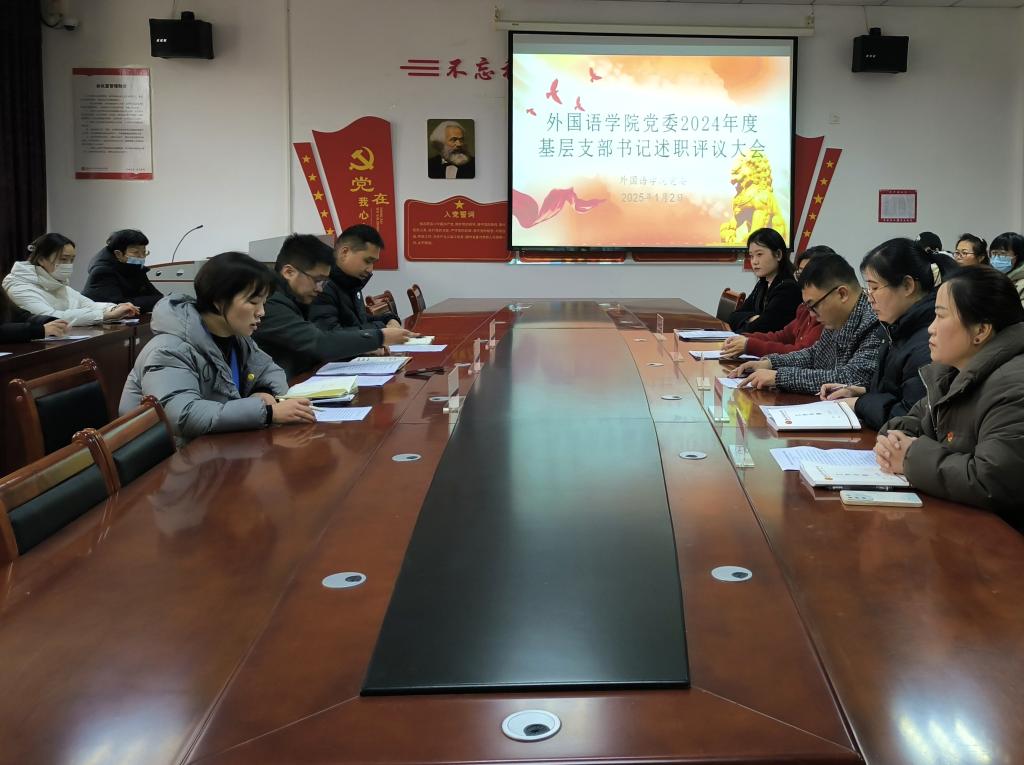 (文/冯梨园 图/管晓玉)为深入学习贯彻习近平新时代中国特色社会主义思想和党的二十届三中全会精神,全面贯彻落实习近平总书记关于党的建设的重要思想,检验党支部书记抓基层党建工作成效,公司党委于1月2日15:00在文华楼2-413会议室召开 2024 年度基层支部书记述职评议大会。参加本次会议的有:国际学部党委书记王晓龙同志、党委宣传委员张国昌同志、党委组织委员郜丽果同志,各党支部书记与师生党员。本次会议由郜丽果同志主持。