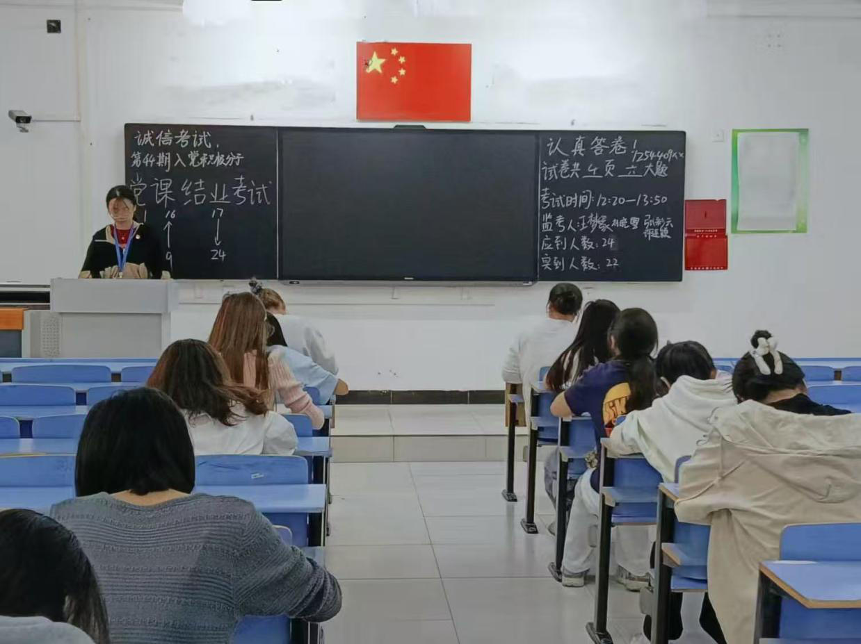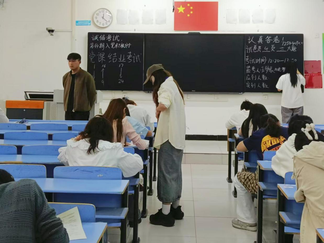 考试过程中,学员们严格遵守考场纪律,全神贯注,认真作答,展现出扎实的理论素养和积极向上的精神风貌。监考教师和员工党员恪尽职守,全程严格监督,确保考试公平、公正、有序进行。本次考试内容涵盖党的二十大精神、党章党史、党的基本理论和方针政策等,全面考察了入党积极分子的政治素养和思想觉悟。