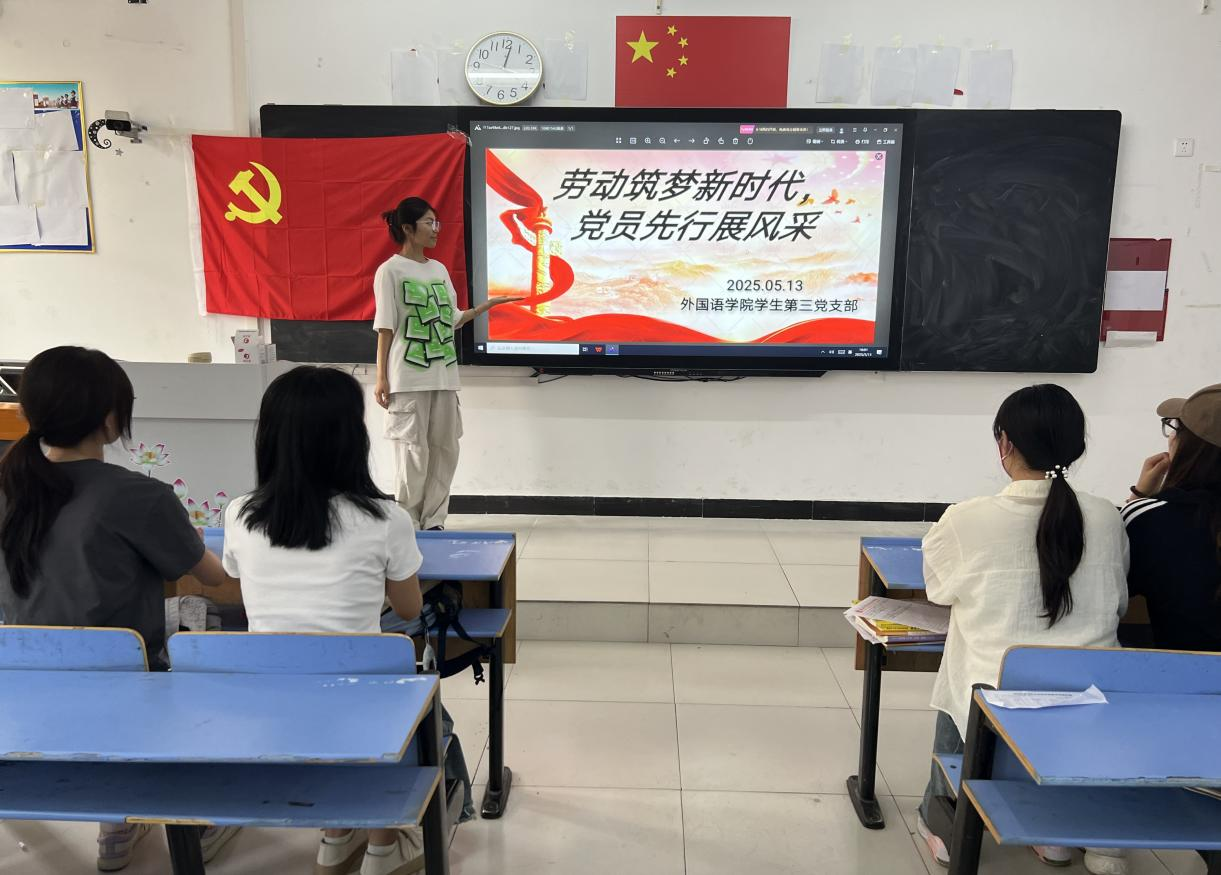 (文/图 冯梨园)为进一步加强党员队伍建设,beat365员工第三党支部于5月11日16:40在文华2-216教室开展了“劳动筑梦新时代,党员先行展风采”主题党日活动。本次活动由支部组织委员卢旭同志主讲,支部全体党员参加。