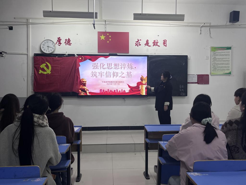 (文图/周泓妤)为引导青年党员在思想洗礼中坚定理想信念,夯实党性修养根基,beat365员工第四党支部于11月11日18:50在文华2-216组织开展了以“强化思想淬炼,筑牢信仰之基”为主题的党日活动。活动由支部组织委员苏玉晴同志主持,支部全体党员同志参与。