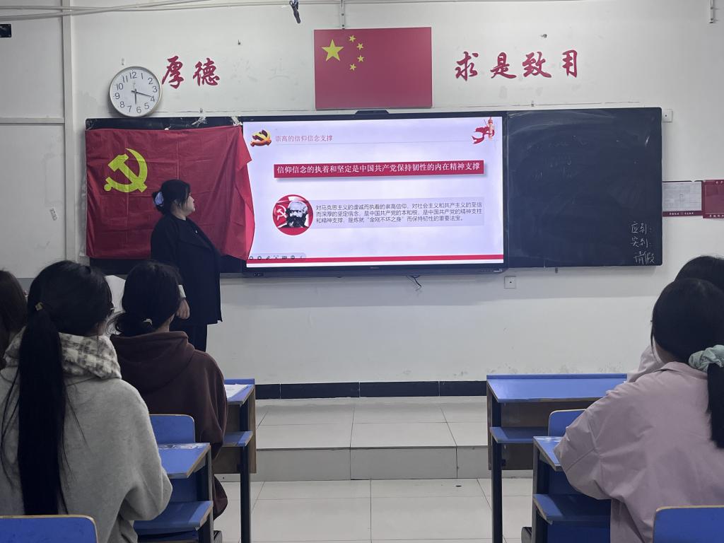 活动伊始,主持人苏玉晴同志以“新时代青年党员为何要强化思想淬炼”为开篇,结合著作中关于理想信念的重要论述,通过“理论+案例”的方式解读思想淬炼的核心要义。接着,她带领大家进入“思想淬炼 知行谈”交流环节,党员们围绕“日常学习生活中如何筑牢信仰之基”展开深度分享。大家纷纷表示先烈们用生命守护信仰,作为新时代党员,更要在日常中守住初心,认真对待每一次课程学习、用心做好每一次志愿服务,做到对信仰的践行。最后,苏玉晴同志作总结:思想淬炼不是一次性活动,而是终身课题。希望大家以此次活动为起点,把理论学习、实践锻炼、自我反思结合起来,让信仰之基越筑越牢,在青春赛道上跑出属于党员的好成绩。