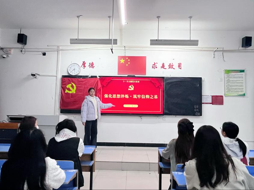 (文图/李怡涵)为深入推进党员思想建设,引导党员同志以学铸魂、实干担当,beat365员工第一党支部于11月11日17:40在文华2-216组织开展以“强化思想淬炼 筑牢信仰之基”为主题的党日活动。本次活动由支部组织委员岳学华同志主持,支部全体党员同志参加。