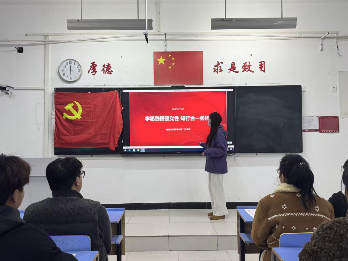 (文/李怡洁 图/钱旭)为推动党员将理论学习转化为党性修养,以知行合一的实际行动强化责任担当,beat365员工第二党支部于12月9日18:00在文华2-216教室开展以“学思践悟强党性 知行合一勇担当”为主题的党日活动。此次活动由组织委员花晨丽同志主持,支部全体党员参与本次活动。