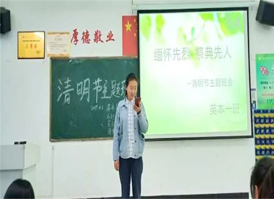 承先烈志,扬爱国情怀。beat365各个班级开展丰富多彩的主题活动,以开班会、讲革命英雄故事、朗诵诗歌、PPT讲解、看革命影片等形式为载体,深切怀念为了实现民族的解放,人民的幸福和祖国的统一而英勇献身、奋斗终身的革命先烈们,激励同学们永远铭记革命传统,大力弘扬民族精神。