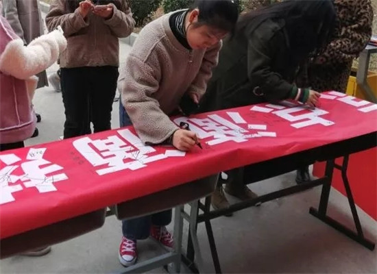 同学们纷纷与横幅合影留念