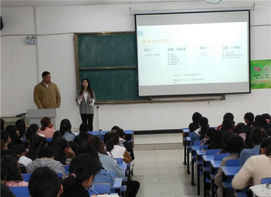 河南省蒂茂教育信息咨询有限公司两位主讲老师首先向同学们介绍了出国留学的优势和相关政策,对QS世界名校的排行进行了分析,增加了同学们对当前世界名校的认知。随后,两位老师详细讲解了雅思和PTE的考试内容、考试模式,以及考试成绩和资格证书,对同学们提出的问题进行答疑,并鼓励同学们开拓眼界,选择适合自己的求学和工作道路。