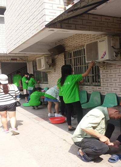 清晨九点,迎着朝霞,员工们再次来到敬老院,他们的到来使原本寂寞的敬老院又一次充满了笑声,他们为老人打扫卫生、整理内务,帮老人理发、梳头、修剪指甲、按摩,同学们在和老人自由交谈的同时,询问老人近段时间情况,活动在大家的欢声笑语中结束。