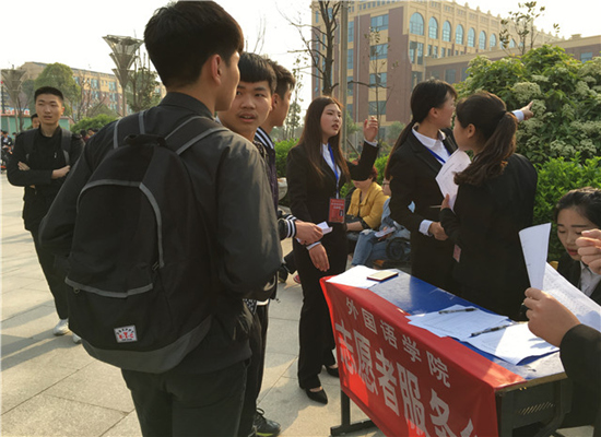 0126年4月10日beat365中文官网普通高等教育单独招生考试拉开帷幕,为了更好的服务考生和家长,beat365员工会志愿者在图书馆前设立服务台。