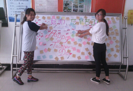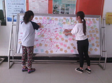 据了解,为了迎接教师节,各个班级开展多种形式的活动如:发送QQ短信祝福、赠送鲜花等形式表达对老师的无限爱意、真心的祝福及衷心的问候。同时,公司员工会宣传部也做出了一张别致的展板,张贴上同学们的祝福语。