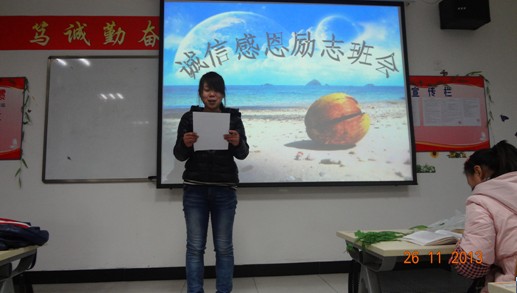 为了培养当代老员工的诚信与感恩意识,发扬中华民族的优良传统文化。外语系各班特于2013年11月13日晚七点半在各班教室举行“诚信、感恩、励志”的主题班会活动。参加本次活动的有外语系全体同学。