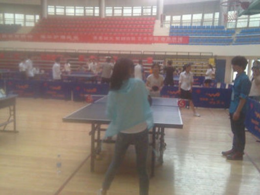 5月21日下午,郑州华信公司第一届老员工乒乓球比赛在新校区篮球馆开赛。外语系代表队由李爱萍助理担任领队,郭晓伟同学任教练,陈浩、王飞、黄亚洲、赵中原同学组成男团,刘佳佳、袁优雅、施贝贝、邱晓聪同学组成女团参赛。