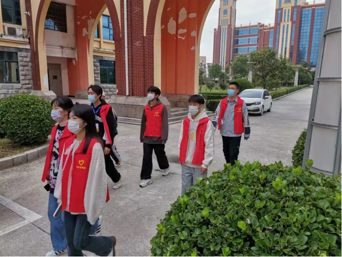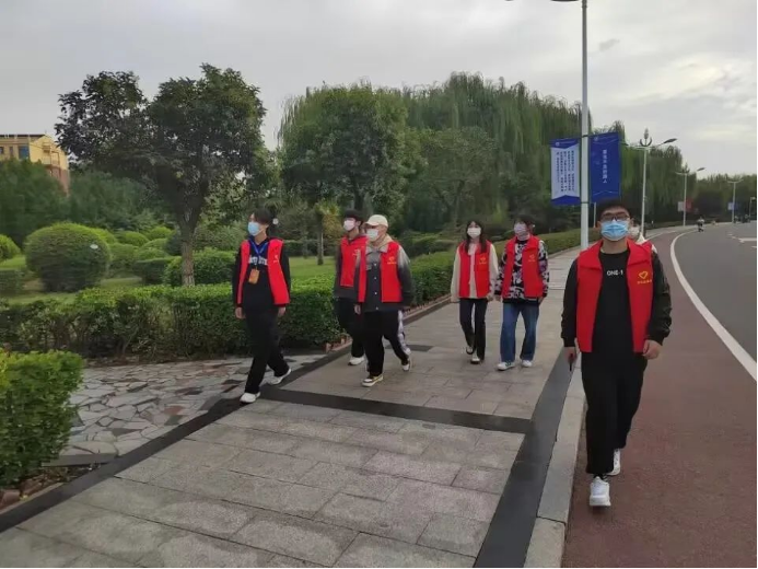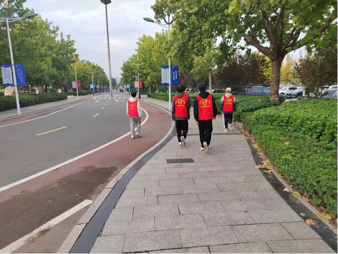 在巡逻期间,团员青年志愿者分时间、分区域进行校园巡查工作。