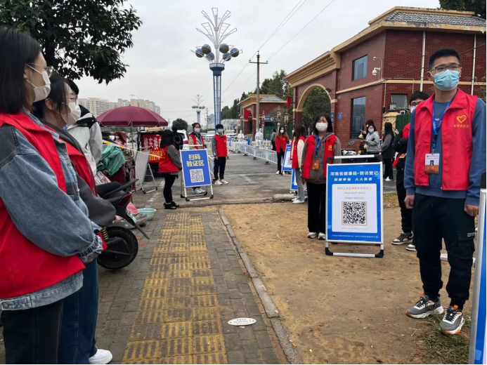 除此之外,在核酸检测现场,团员志愿者更是化身秩序维护员、防控宣传员、交通引导员,耐心细致的帮助同学们扫码、填写信息。